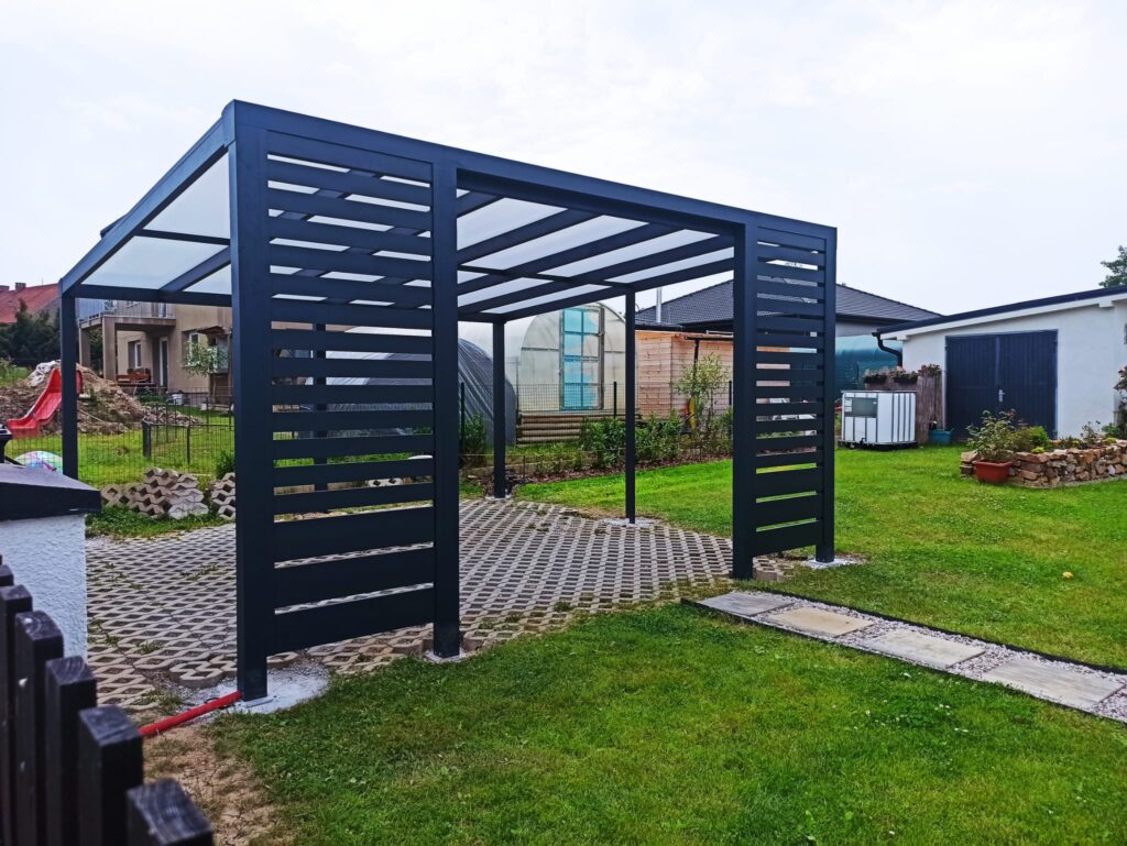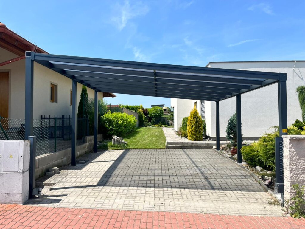 Zadání: přístřešek pro dvě auta, sladit barvu s plotem a bránou.Parametry: cca 6,0 × 5,7 m, 2 stání, hliník RAL 7016/DB703, krytina polykarbonát opál 16 mm,…